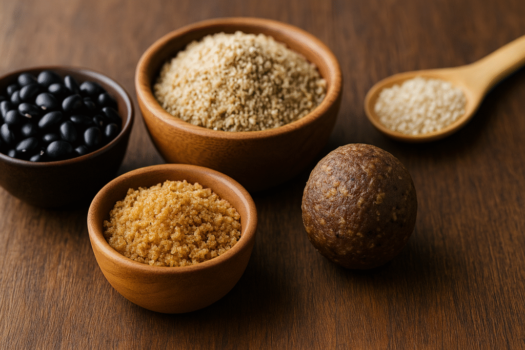 - வெல்லம்: இயற்கை இனிப்பு, இரும்புச் சத்து மற்றும் ரத்தத்தை தூண்டும்.