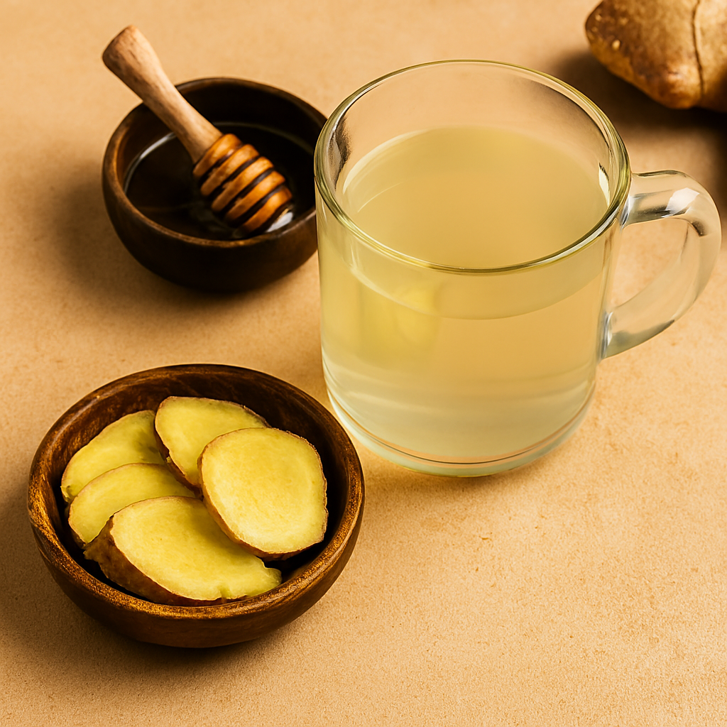 - இஞ்சி துண்டுகளை தண்ணீரில் 5 நிமிடம் காய்ச்சி, வடிகட்டி, தேன் சேர்த்து பரிமாறவும்.