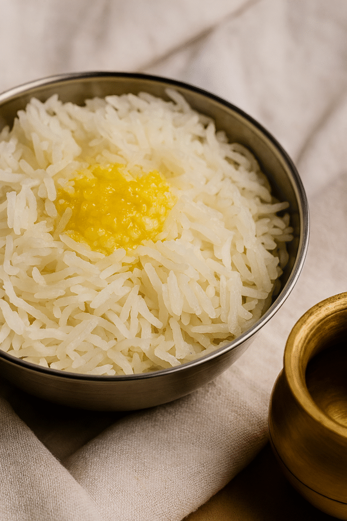 தீபாவளி சாப்பாட்டின் அடிப்படை வெறும் வெந்த அரிசி அல்ல; நெய் ஊற்றிய, வாசனைமிக்க, பரிமாற்றத்திற்கு ஏற்ற வகையில் தயாரிக்கப்படும் சாதம்.