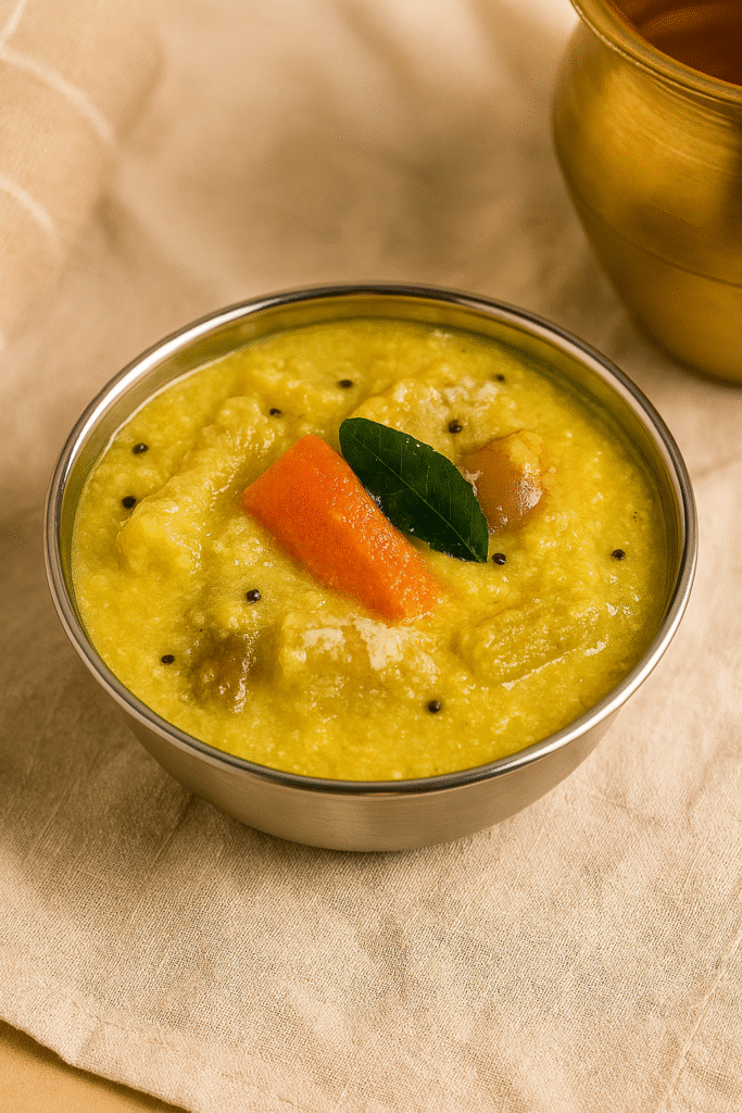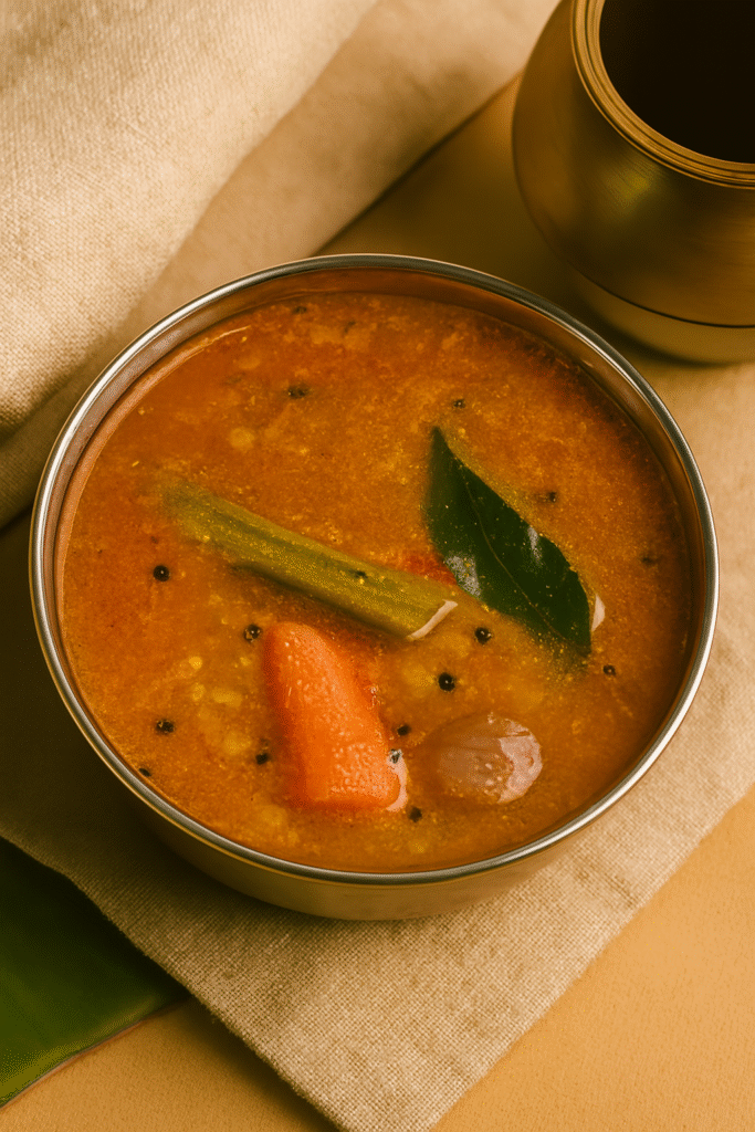 பருப்பு, காய்கறிகள், மற்றும் சாம்பார் பொடி கொண்டு தயாரிக்கப்படும். இது சுவை மட்டுமல்ல, ஊட்டச்சத்து நிறைந்த உணவாகும். துவரம்பருப்பை வேக வைத்து, வெங்காயம், தக்காளி, மற்றும் காய்கறிகளை வதக்கி, புளி நீர், சாம்பார் பொடி சேர்த்து கிழித்து, பருப்புடன் கலந்து கொதிக்க விடவும்.