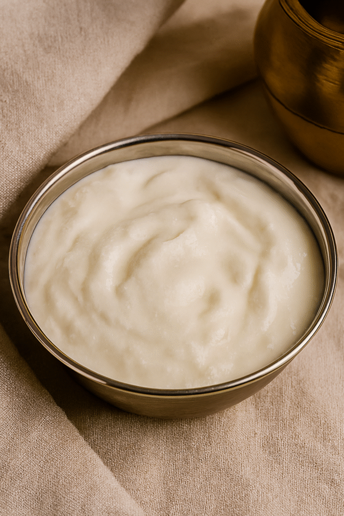 பசுமை பாலை காய்ச்சி, குளிர்ந்ததும் தயிர் கலந்துவைத்து, 6–8 மணி நேரம் வைத்தால் தயிர் தயார்.