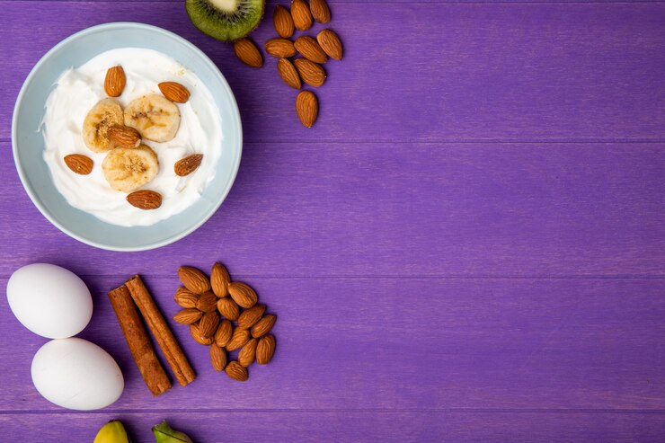 குறைந்த கார்போஹைட்ரேட் மற்றும் அதிக நார்ச்சத்து கொண்ட பாதாம், யோகர்ட்டுடன் சேர்த்து சாப்பிடும்போது ஒரு முழுமையான உணவாக மாறுகிறது.