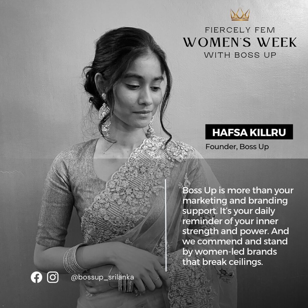 24 வயதுடைய ஹப்ஸா கில்லரூ, Boss Up Sri Lanka என்ற மார்க்கெட்டிங் மற்றும் உள்ளடக்க உருவாக்க நிறுவனத்தை நிறுவியவர். மனோதத்துவத்தில் டிப்ளோமாவும், பிஸினஸ் நிர்வாகத்தில் பட்டமும் பெற்ற ஹப்ஸா, 17வது வயதில் ஒரு திருமண இதழுக்காக எழுதியதில் இருந்து தனது பயணத்தைத் தொடங்கினார். ஆனால் அவர் எழுத்தாளராகவே இரக்கவில்லை—தனக்குபோல் இன்னும் பலரையும் உந்தியெழுப்ப ஒரு நிறுவனத்தை உருவாக்க விரும்பினார்.